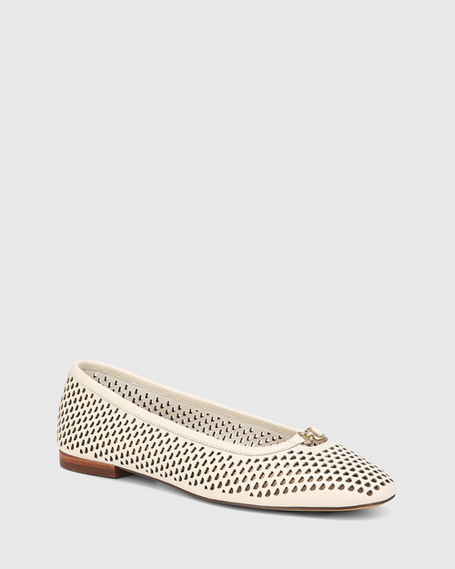 Elevate everyday style with the AIMLE Flats. Designed with premium quality leather in an easy-to-wear sand shade. This must-have style features a sleek silhouette with a perforated twist, a cushioned insole and low-profile heel. Pair yours with a flowing skirt or keep it casually chic on the weekends with denim.