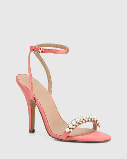 Embrace nostalgia with the 'Barbiecore' aesthetic. From traditionally girly to cool-girl chic, the Aitken heel is crafted in recycled satin and rendered in a vibrant pink hue. This vintage-inspired sandal will find modern appeal in your wardrobe with its retro peep-toe silhouette, sleek stiletto heel and leg-elongating ankle strap. Experiment with colour-blocking and pair yours with contrasting colours to honour your inner maximalist.