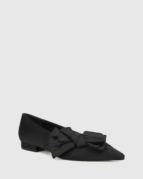 Inspired by runway looks, the Alta in black is an elevated take on a simple classic. An elasticated strap runs across the top of the foot for flexibility, giving a nod to the mary jane, while the upper features a simple ballet bow. Pair it with wide pants and a knit vest.