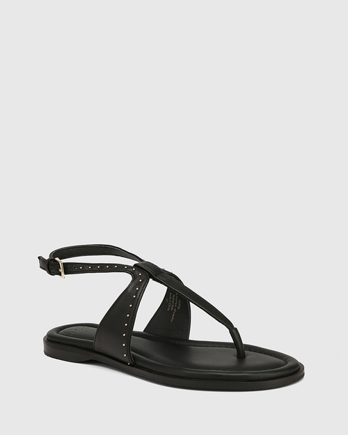 The masterfully minimal sandal has returned and is ready to replace your average rubber pair. The Dacia thong is crafted in soft black leather and features a subtle square toe, a barely-there silhouette and our beach-ready in-built padding. Discover the endless wearability and style yours with everything from dresses to pants.