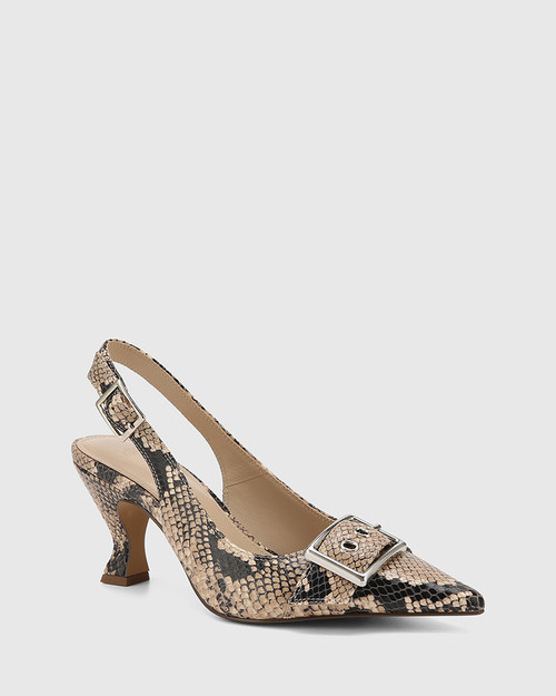 Pair a pointed toe with your go-to office look this year. The Mera features a delicate heel strap and our double layer in built padding for long lasting comfort. Wear it with wide leg trousers and a basic white tee.