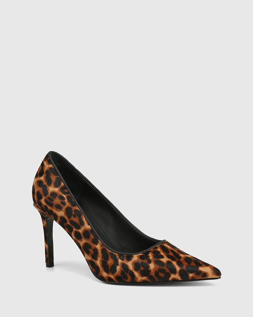A functional flat with playful edge, designed with a striking pointed toe and loafer-inspired panelling. Crafted with luxe leopard print hair-on leather, adorned with a glossy leather strap, the Merci flat in leopard print is sure to make a statement this season.