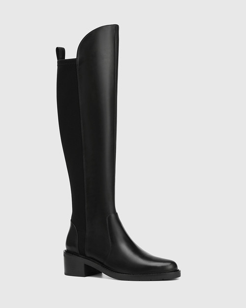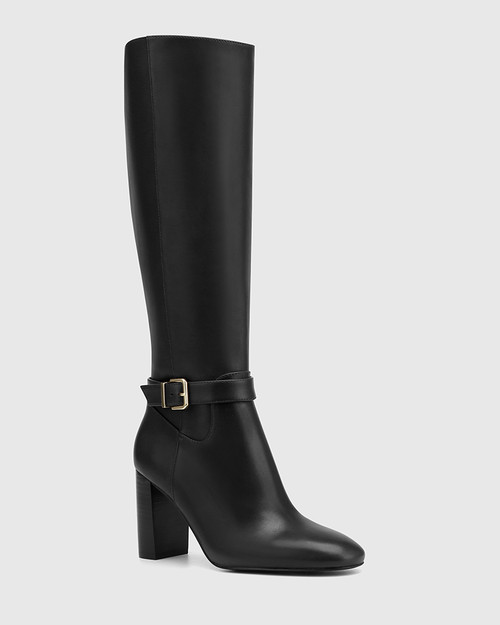 Featuring a square toe and polished leather stack heel, Nilo in black is a chic knee high boot crafted with premium nappa leather. This boot is designed to elongate the leg and elevate any look instantly. Pair it with a denim and an oversized blazer for a corporate-casual look sure to turn heads.