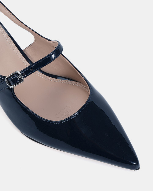 The Mingle Slingback Heel by Shelly Shen showcases a refined leather upper with a smooth leather lining and sock for lasting comfort. Designed with a supportive slingback strap, this elegant heel sits on a durable manmade outsole and features a versatile 5.5cm heel height—perfect for effortless sophistication.