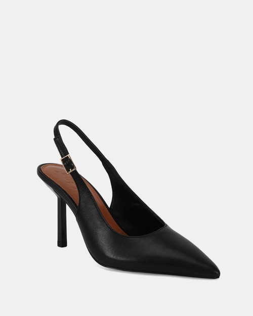 The Nadia Slingback Heel by Shelly Shen exudes sophistication with its premium leather upper, smooth leather lining, and cushioned leather sock. Designed for a secure fit with a buckle fastening, this elegant style is finished with a sturdy manmade outsole and a striking 9cm heel for a refined lift.