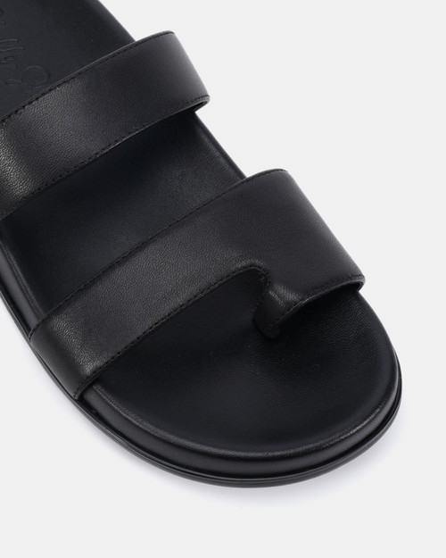 Chic with a touch of polish, the Nikola slide by Shelly Shen is crafted with a sleek leather upper, soft leather lining and sock, and a 3cm heel for subtle lift. A rounded toe and detailed trim complete this modern everyday essential.