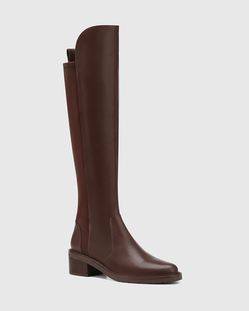 Baniska Woodland Brown Leather and Neoprene Knee High Boot