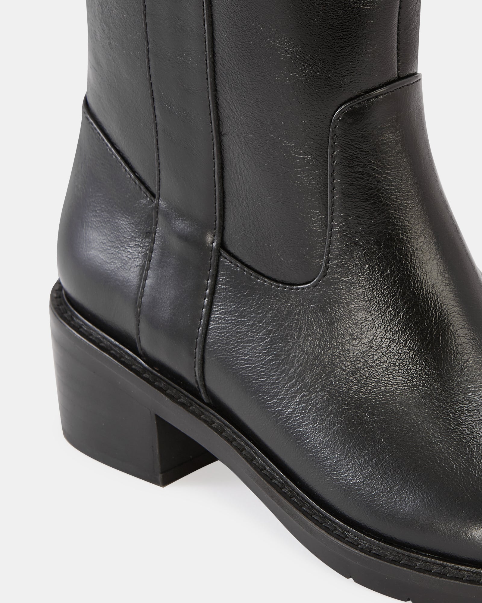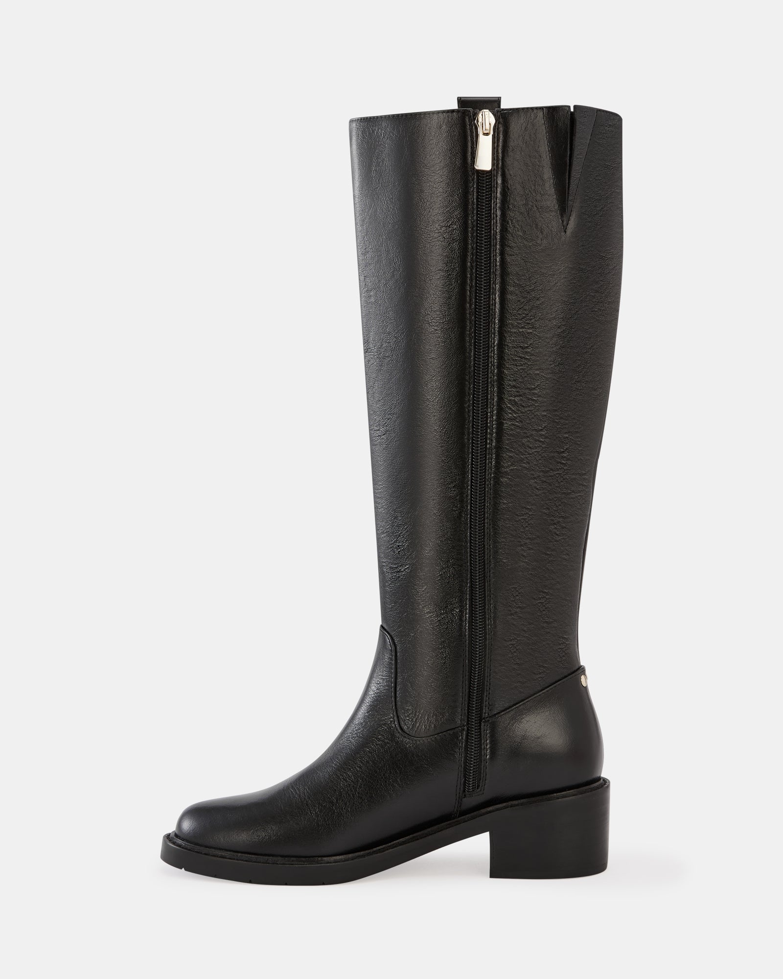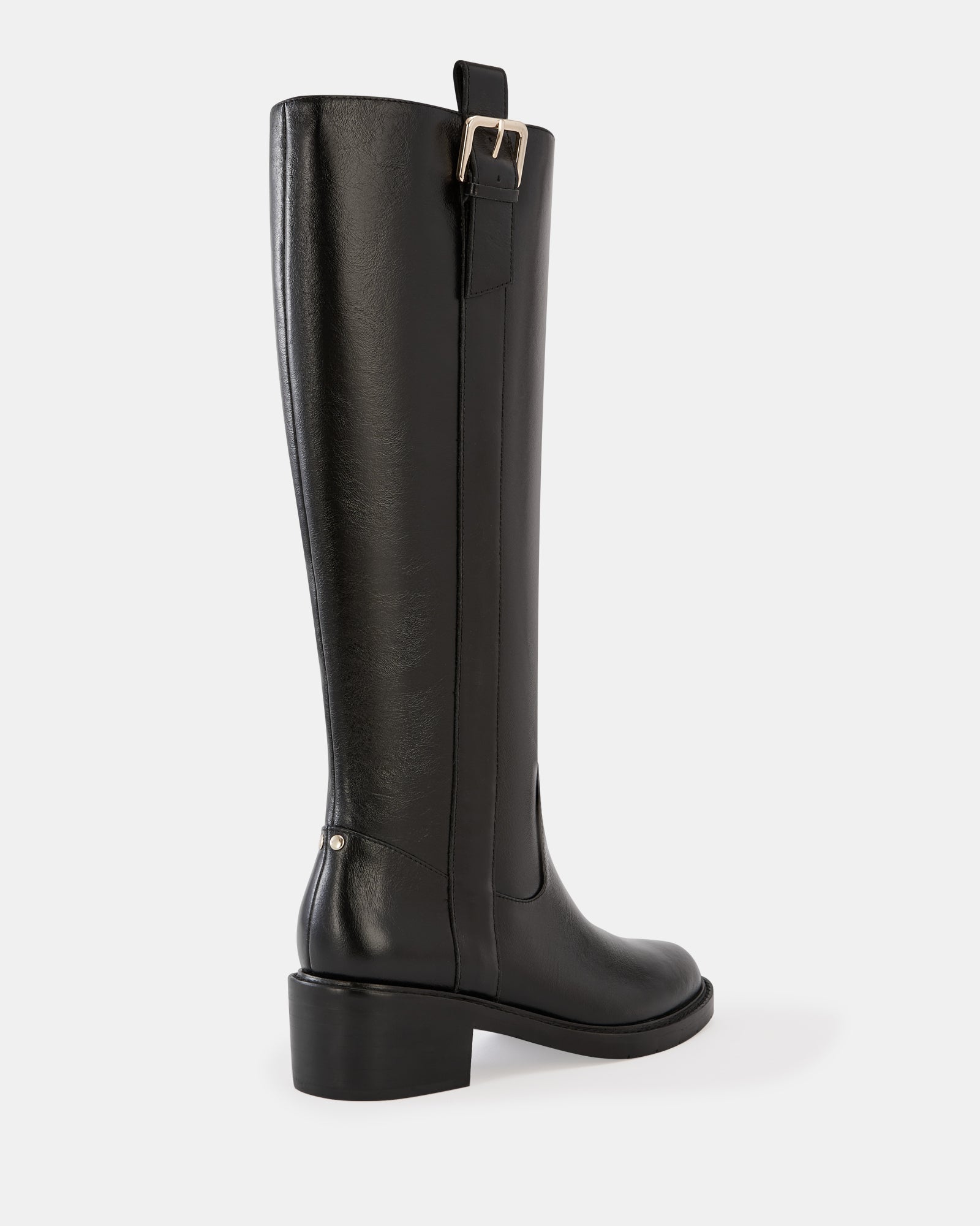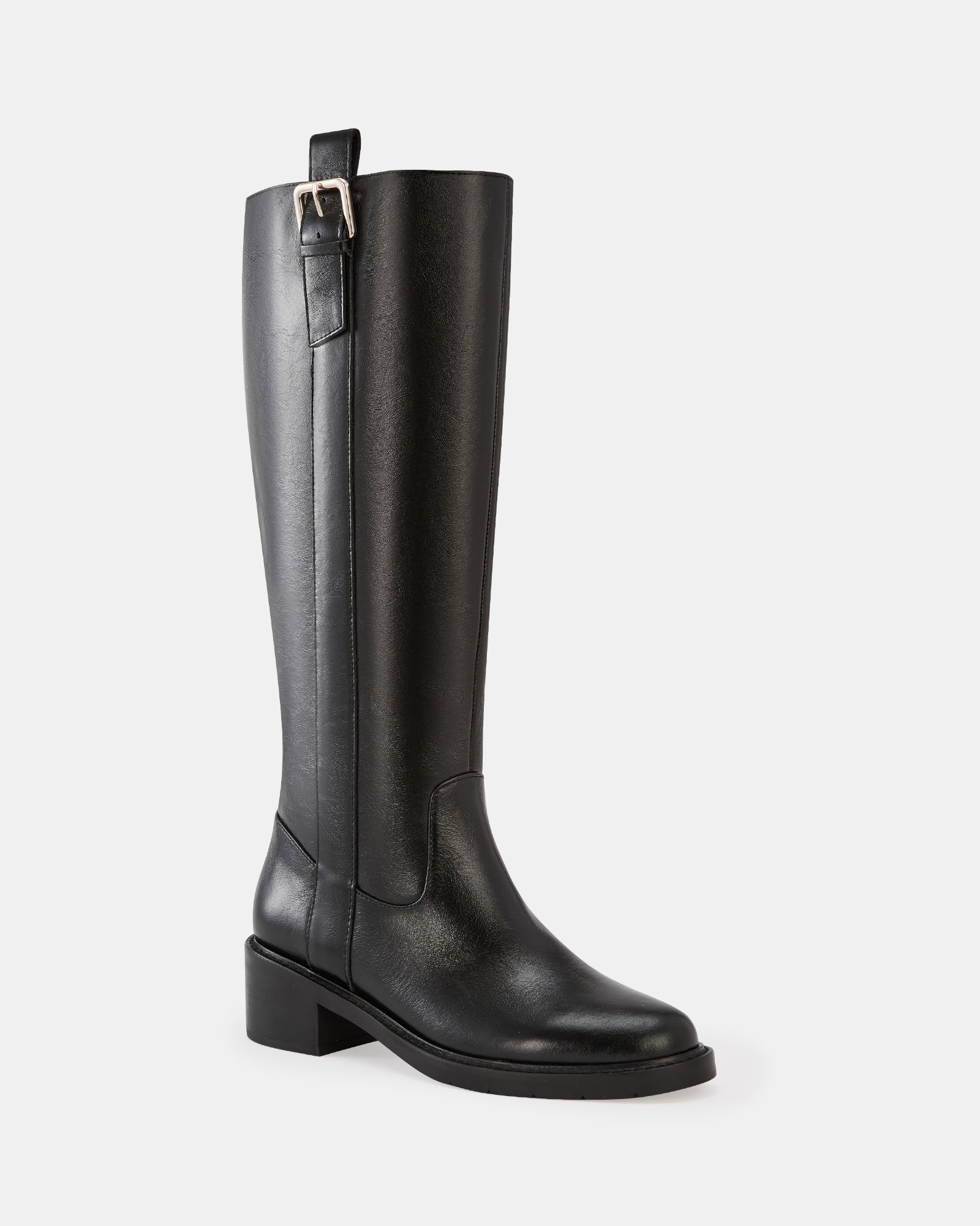 This season, bring big boot energy with Bobby. Crafted in soft leather and rendered in a deep black hue, this new-season boot will add the right amount of coverage to your winter looks. This utilitarian-inspired knee-high boot features a comfortable heel for all-day wearability, an internal zip for ease of fit, and a pull tab that is not only decorative but functional. Pair yours with an oversized knit and a silk midi skirt for a look that combines masculine and feminine styling.