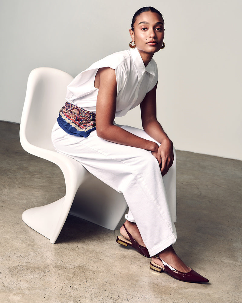 Meet Margaret — where glamour and comfort collide. This chic pointed toe flat features a classic slingback design and sleek side cut-outs to add a touch of edge to any outfit. Style with your favourite office outfit or your favourite denim.