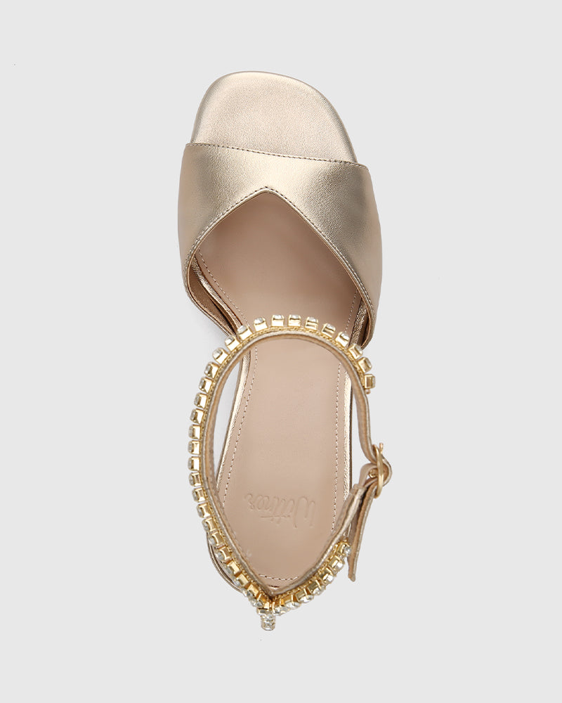 Boldy bejewelled, Rayne is an event-wear staple for those not afraid to shine. Designed with a squared toe subtle flared block heel, and an adjustable ankle carefully adorned with crystals. Day or night, Rayne is sure to make you sparkle.