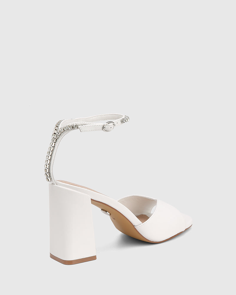 Boldy bejewelled, Rayne is an event-wear staple for those not afraid to shine. Designed with a squared toe subtle flared block heel, and an adjustable ankle carefully adorned with crystals. Day or night, Rayne is sure to make you sparkle.