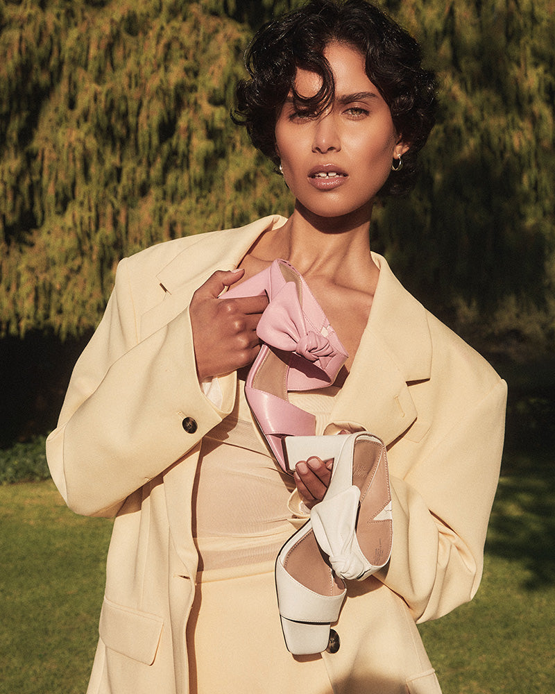 Introducing the newest heel on the block. Sally is crafted in premium leather with this season's most in-demand hues. Topped with an oversized bow, this sandal features a double-strap upper, flared block heel and our comfort-first in-built padding. Pull these out when you're dressing to the nines or you just need a little extra oomph they'll look great with cocktail dresses or straight-leg jeans.