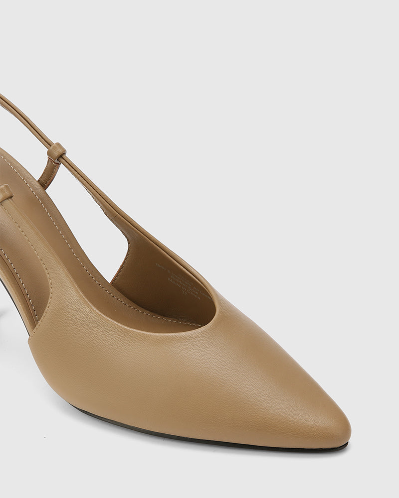 Elevate with the Sella Taupe Leather Slingback, a sophisticated yet undeniably feminine style. Featuring a graceful almond toe and a refined heel, Sella is designed to exude understated glamour. The taupe leather adds a timeless touch, while the slingback strap ensures both comfort and a secure fit. Perfect for occasions where sophistication meets allure, Sella effortlessly complements both tailored and flowing silhouettes.